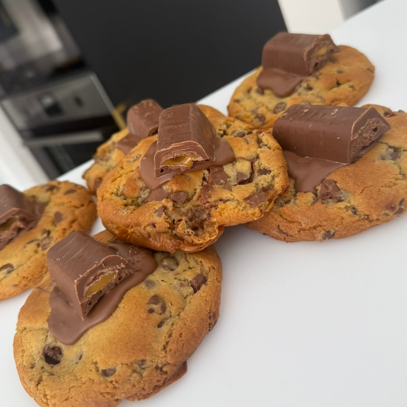 Indulge in the ultimate chocolatey treat with our Wispa Gold Cookie. Filled with chunks of Wispa Gold pieces, each cookie is packed with a rich, creamy center and a satisfying crunch. Topped with a generous piece of Wispa Gold chocolate, this cookie offers the perfect blend of smooth, melt-in-your-mouth chocolate and crispy bubbles, making it a must-try for any chocolate lover.