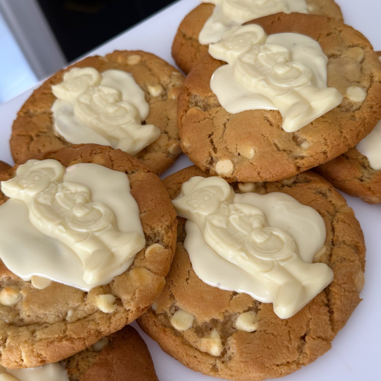 A dream for white chocolate lovers! Our Milkybar Cookie is filled with creamy white chocolate chips, creating a soft and melt-in-your-mouth texture. Topped with a smooth layer of white chocolate and a fun Milkybar Kid for that extra touch of sweetness and nostalgia. Every bite is a rich, buttery treat that's perfect for satisfying your sweet tooth!